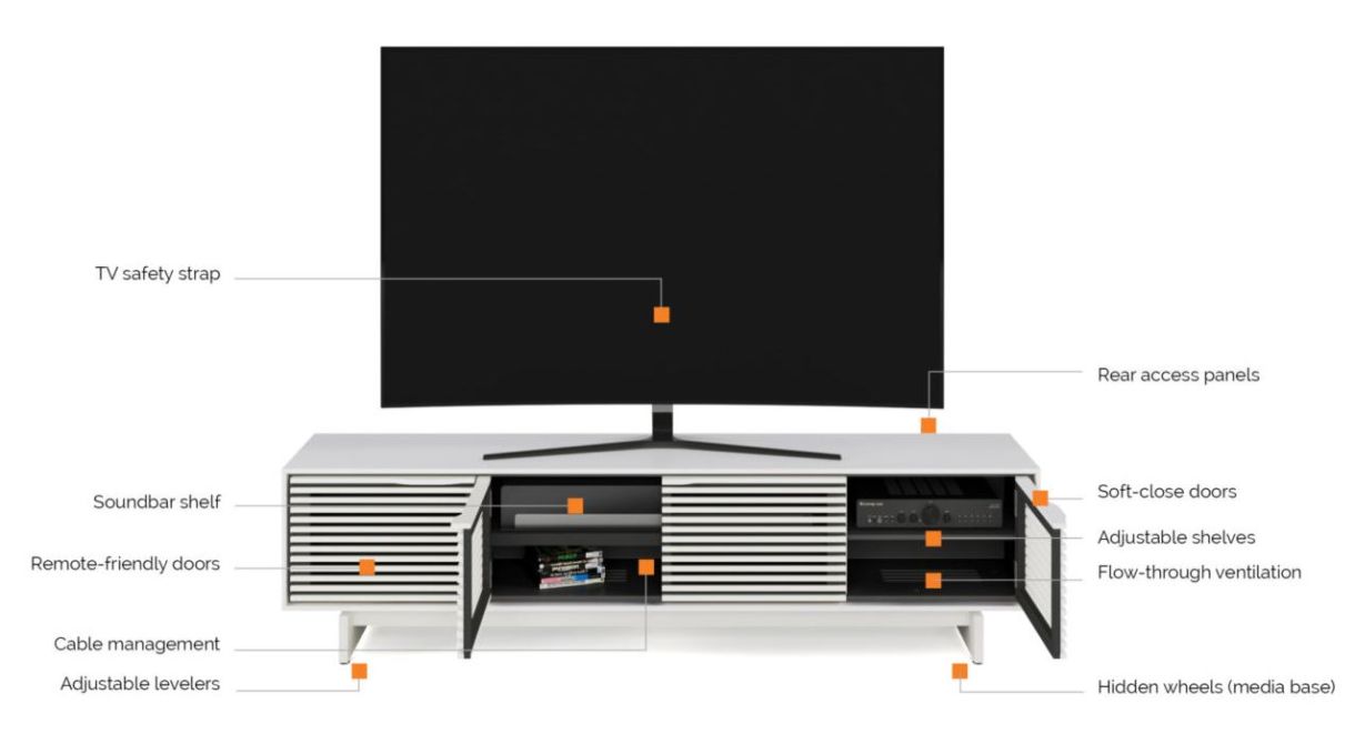 • Hidden wheels (media base option) – easy to move the cabinet away from the wall