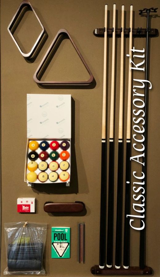 Select the clean, strong lines of the veneered tapered legs or opt for the solid wood ball and claw leg. Solid wood rails, Brunswick-certified premium slate, and pearlized diamond-shaped sights enhance the experience.