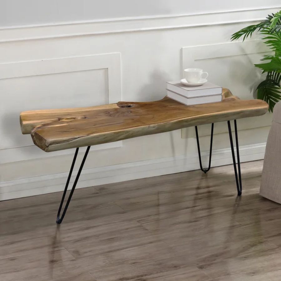 FinancingThe Baron Coffee Table is a stylish and functional piece that combines rustic charm with modern design. It features a solid teak wood tabletop that showcases natural wood grain patterns, adding a touch of warmth to any living space.