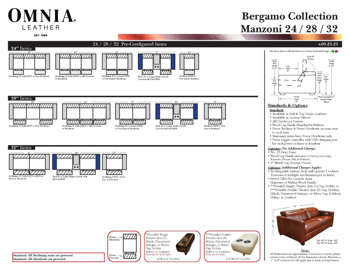 Bergamo Collection by Omnia is an Italian inspired, stunning and surrounded in luxury. It makes any space instantly feel more professional with the added bonus of being the most comfortable piece of furniture. The Manzoni style ingrains an eloquent style with its tufting surrounding the sofa.The Bergamo Collection comes standard with all power-tilt headrest and recliners standard.