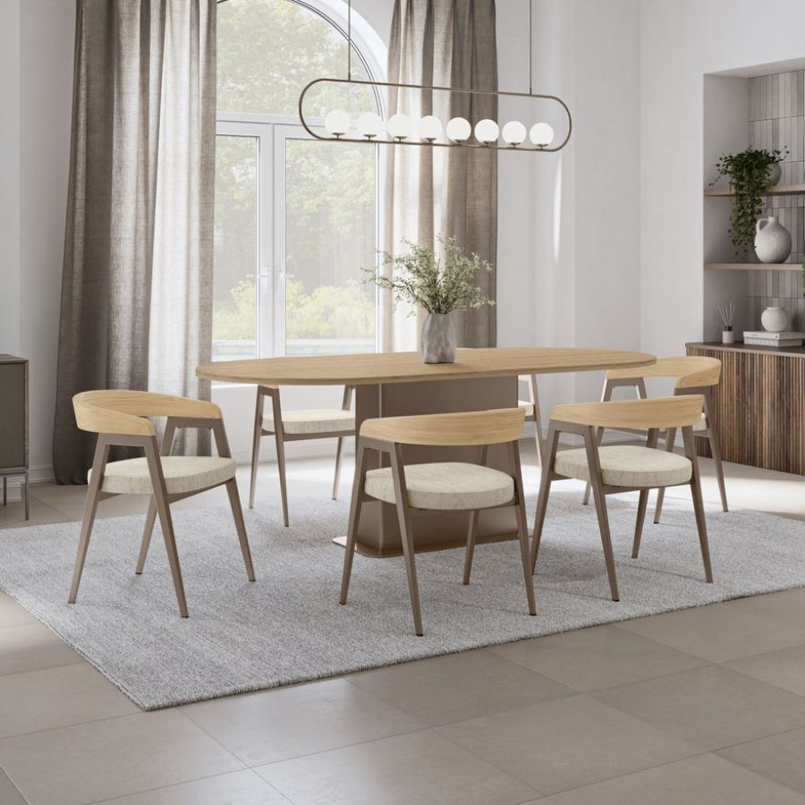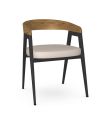 Its curved wooden backrest gracefully extends to form armrests, creating a sense of continuity and elegance. The plush upholstered seat enhances its inviting appeal, while sleek metal legs add a touch of refinement to its overall aesthetics. A perfect balance of style and comfort, the Carmela chair will undoubtedly enhance your living space!