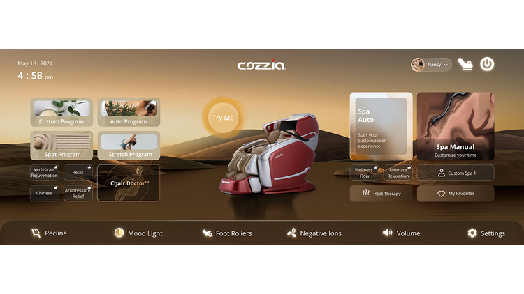 With the industry-leading touch screen, a higher level of interactivity is provided, allowing users to take greater control of their massage experience.