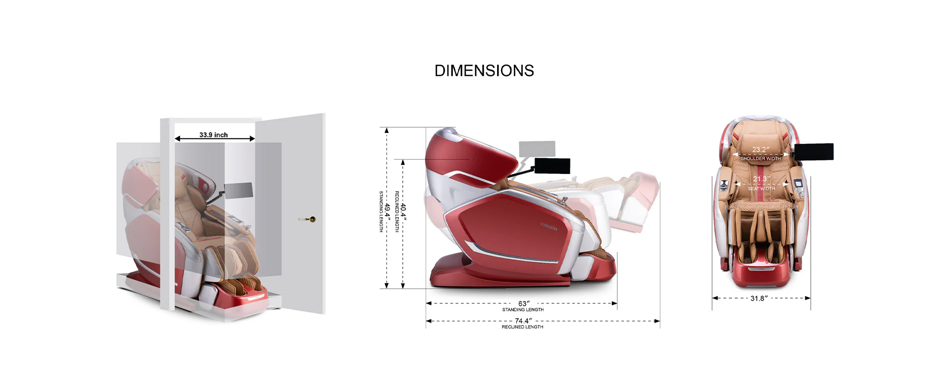 Full Recline (L x W x H): 74.4" x 31.8" x 40.4"