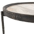 - A honed finish and inset travertine stone top provides contrast and durability