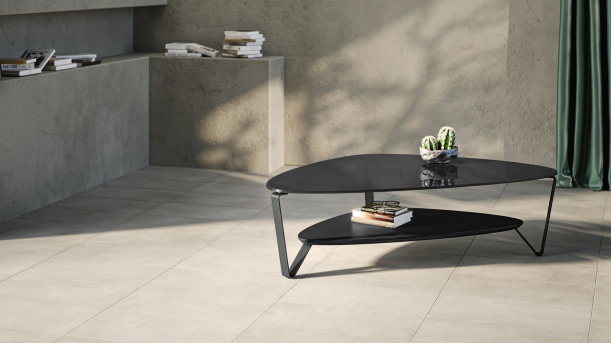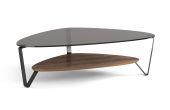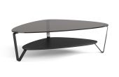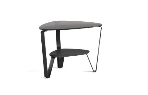 Adding to its allure, the tables feature a floating lower shelf, available in distinct finishes, offering an eye-catching element to any living space.