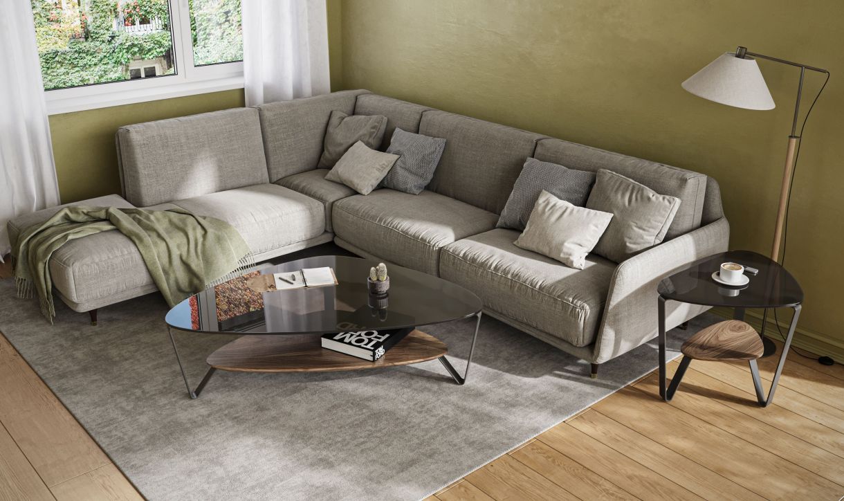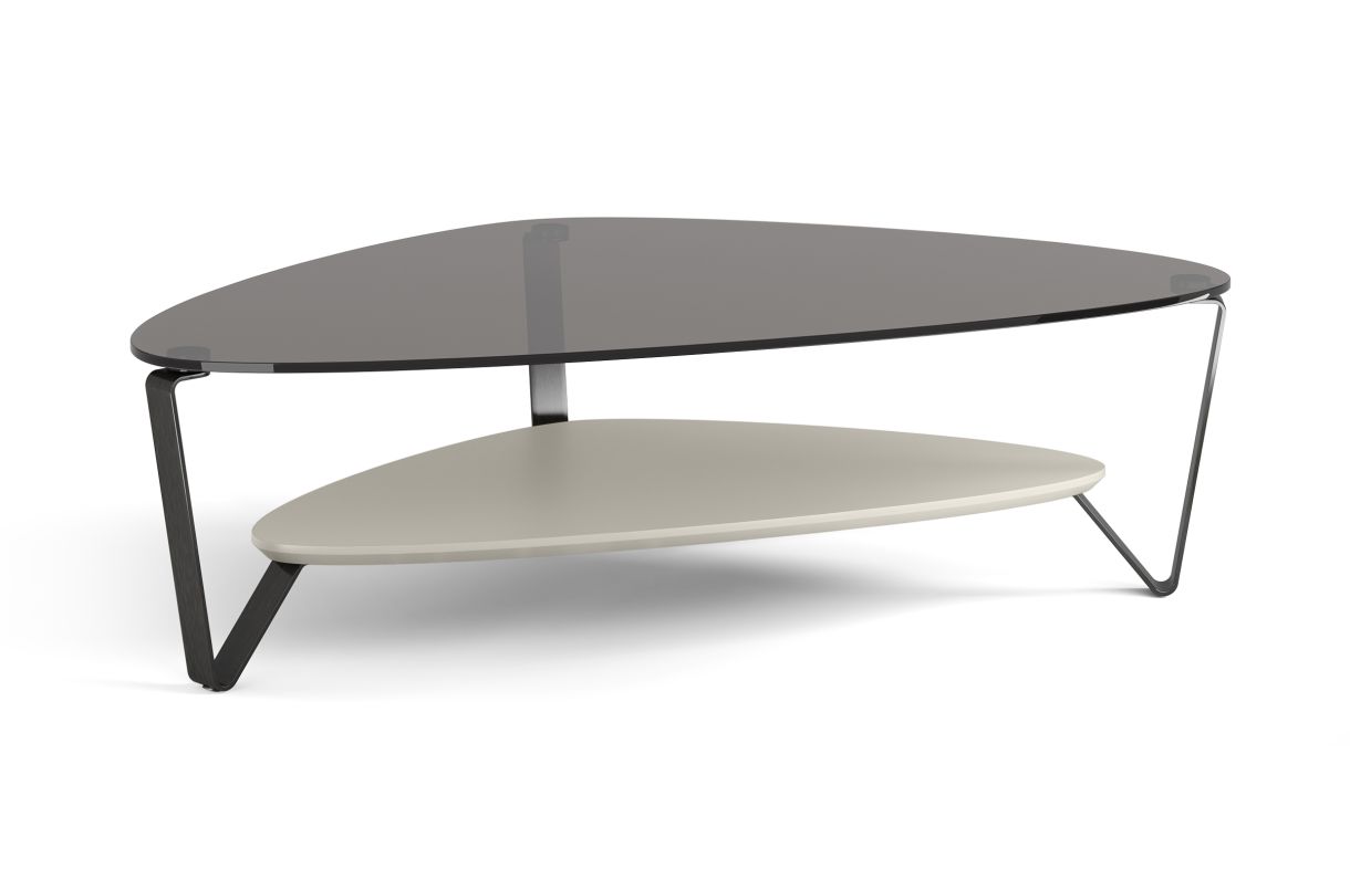 Showcasing a striking grey-tinted glass top surface artfully floating while affixed to sculptural brushed metal legs, Dino provides a balance of elegance and durability.