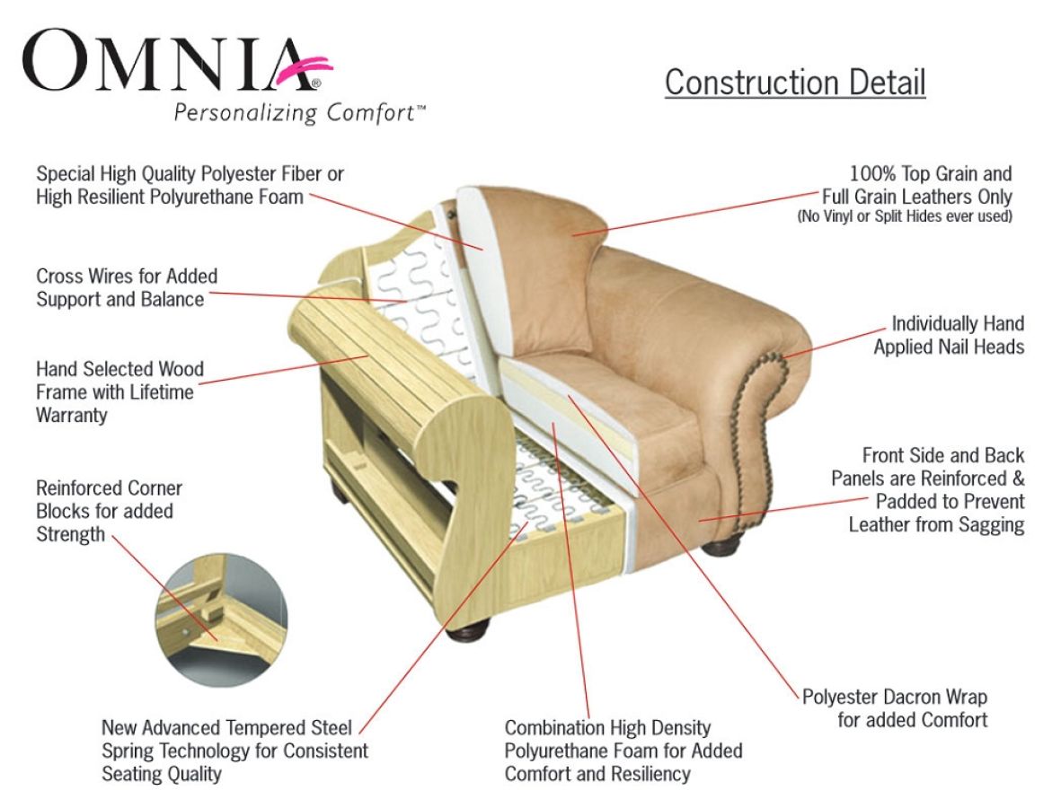 Variations in shade, texture and natural markings are all characteristics and qualities of fine leather. Please avoid chemicals or sunlight to preserve the natural beauty of your leather furniture.