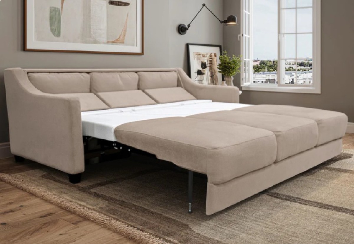 Unlike traditional sleeper sofas that have heavy pullouts and are clunky to operate, the Slofa has an intuitive design. Their patented flow-mechanism for opening and closing is so easy you can do it with one hand. There’s also no need to remove seat cushions. It effortlessly converts to a bed in seconds, revealing a plush mattress for a good night’s sleep.