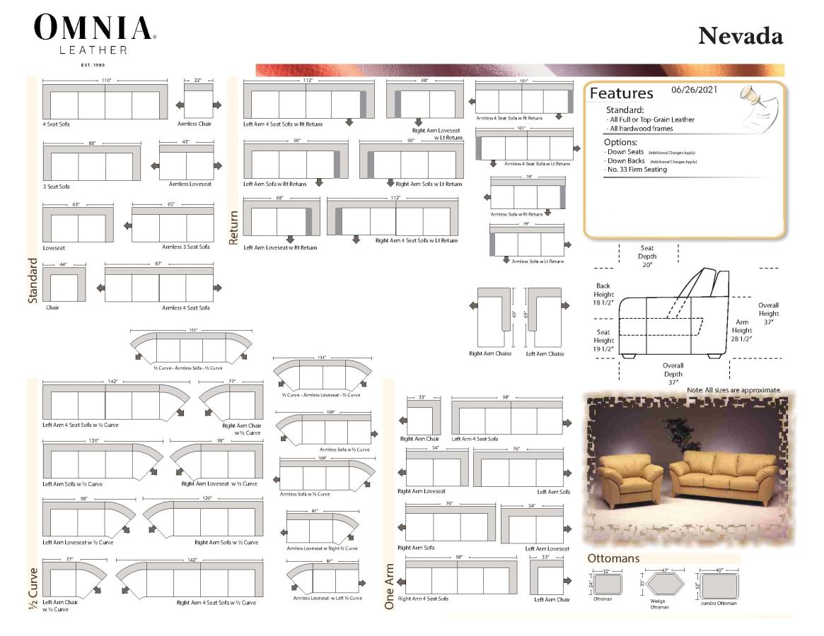 Variations in shade, texture and natural markings are all characteristics and qualities of fine leather. Please avoid chemicals or sunlight to preserve the natural beauty of your leather furniture.