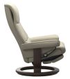 This model has an extra tall slim back, particularly suitable for those of us who like to stretch out. The model also has an elegant and comfortable neck cushion, which can be adapted to users with different heights to provide perfect neck support. Shown with the classic hourglass wood base for traditional style.