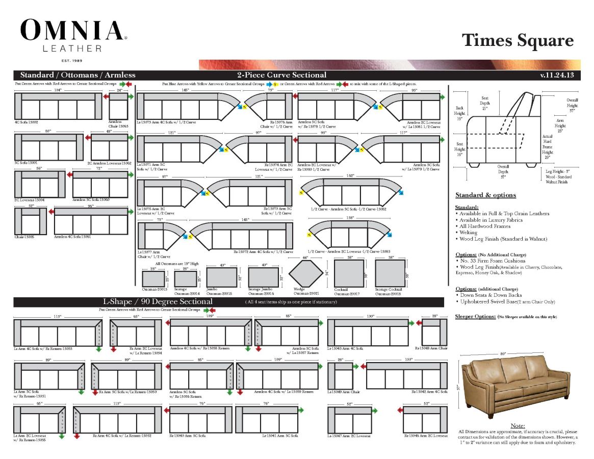 Personalize this configuration to create the perfect size sofa or sectional for your home. Available in over 400 colors of luxurious fabrics and 100% top grain & full grain leathers (no vinyl or split hides are ever used). Hand tailored hardwood frame with a lifetime warranty. Made in the USA!