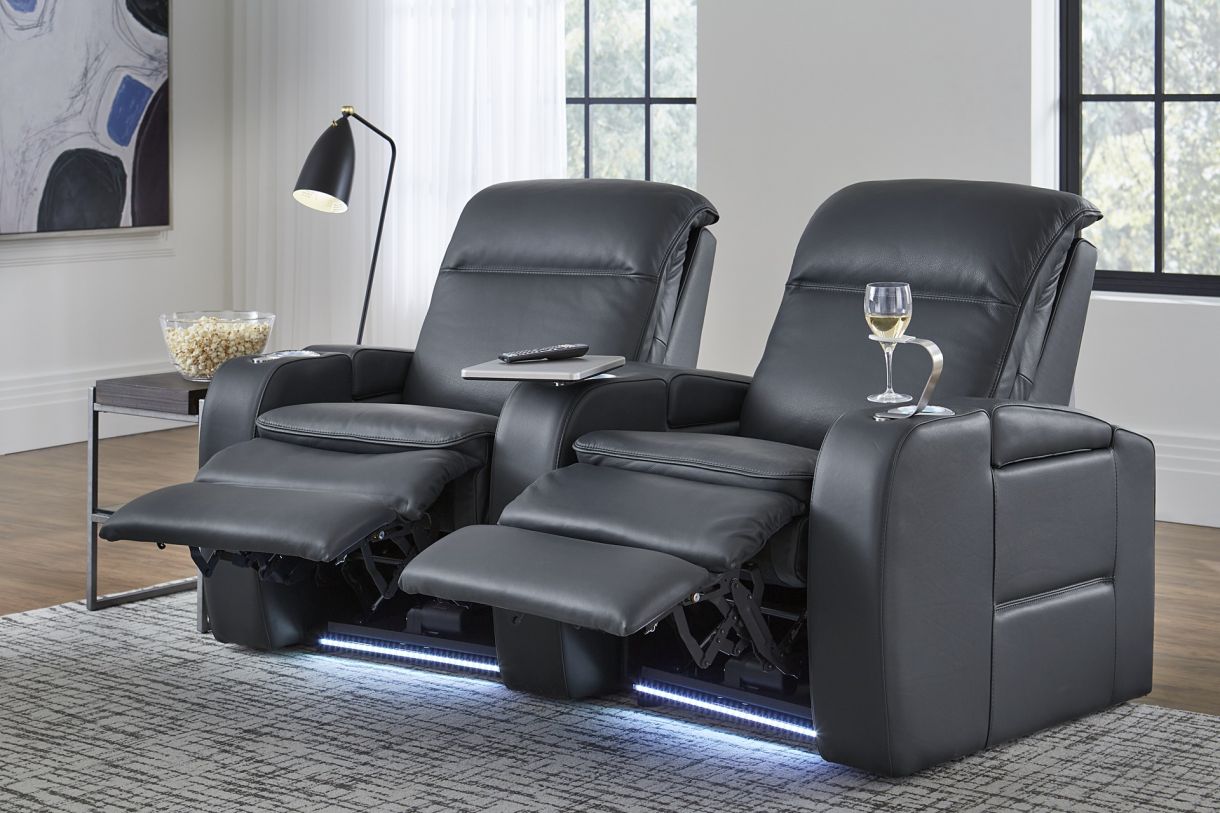 A luxurious 1.5" of memory foam offers uncompromising comfort for long durations, and a full pad-over chaise with extended footrest gives complete support with extra legroom. Power lumbar, headrest, and recline are the starring attractions in this modern motion seat. A memory set key allows you to program your ideal position and return to it automatically with the push of a button. The Vertex is an impressively engineered, stylish choice that will make a welcome addition to any home theatre.